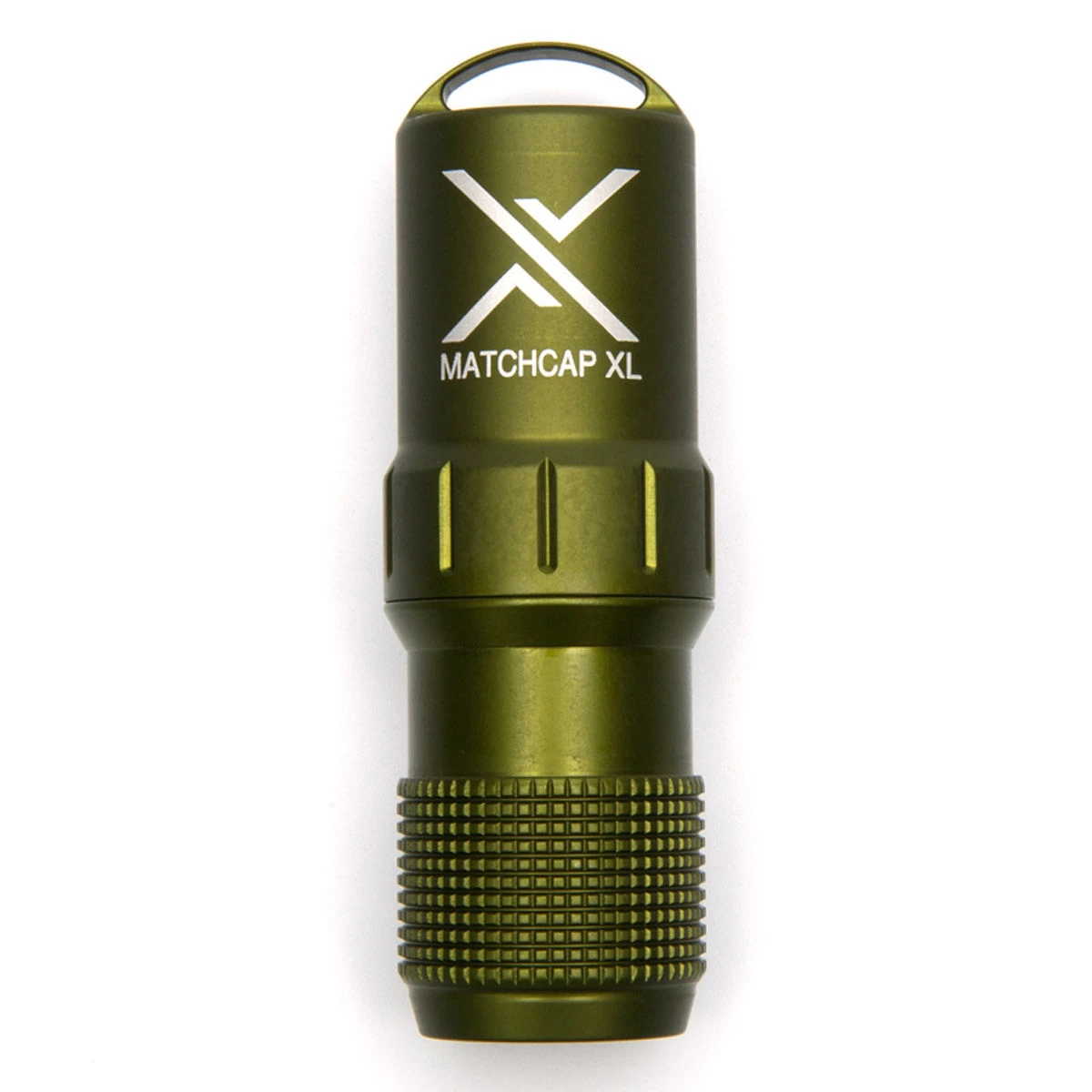 The MATCHCAP XL™ isn’t limited to just matches. Using a Stormproof (2.9 inches long) match, the new design leaves 0.3 inches to spare for tinder storage. If using kitchen matches, nearly half of the MATCHCAP XL™ is available for storage. Use the extra space to store water purification tablets, tinder, medicine, fishing hooks, first aid kit, etc.